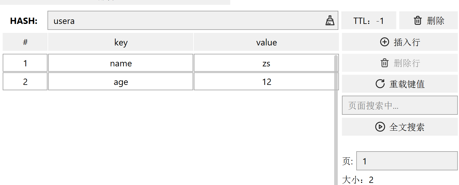 hash:hash是一种存储键值对的map数据结构,适合用来存放对象类数据。每一个键都是唯一的,当遇到重复的键时会报告同名键值已存在。(不同的对象通过键名区别,键下面通过key取到数据)
